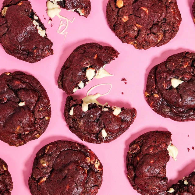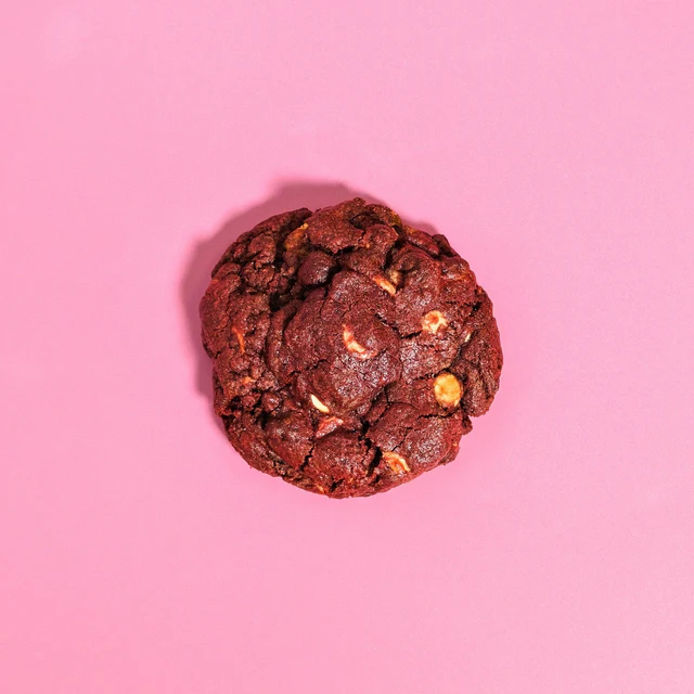A flawless reimagining of a beloved cake in the form of a convent cookie. This treat boasts white chocolate chips and a rich, subtly tart vanilla-cocoa dough.